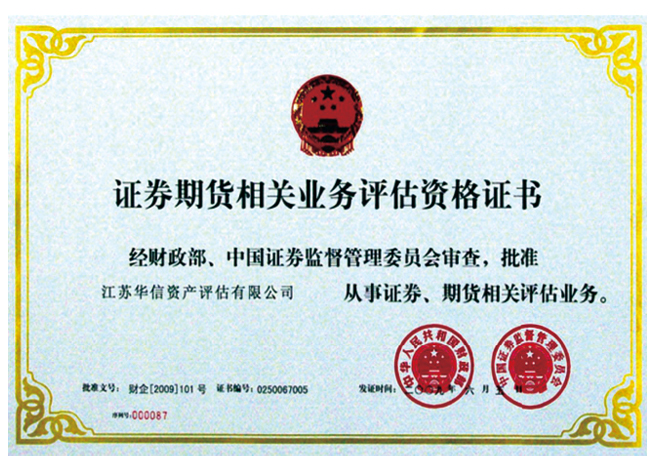 - 證券期貨相關(guān)業(yè)務評估資格證書